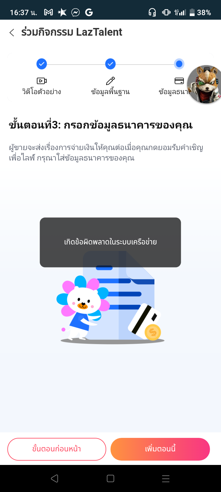 สวัสดีค่ะ คือวันนี้เราพยายามสมัคร LazTalent แต่พอมาถึงจุดที่ให้กรอก Bank Account Information กลับไม่สามารถกรอกได้ ขึ้นว่า "เกิดข้อผิดพลาดแบบนี้เลยค่ะ ควรทำไงดีค่ะ