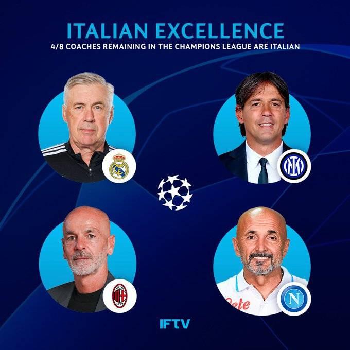 4 จาก 8 ทีม ใน Champions League รอบ quater-finals ใช้บริการโค้ชชาวอิตาลี 🇮🇹