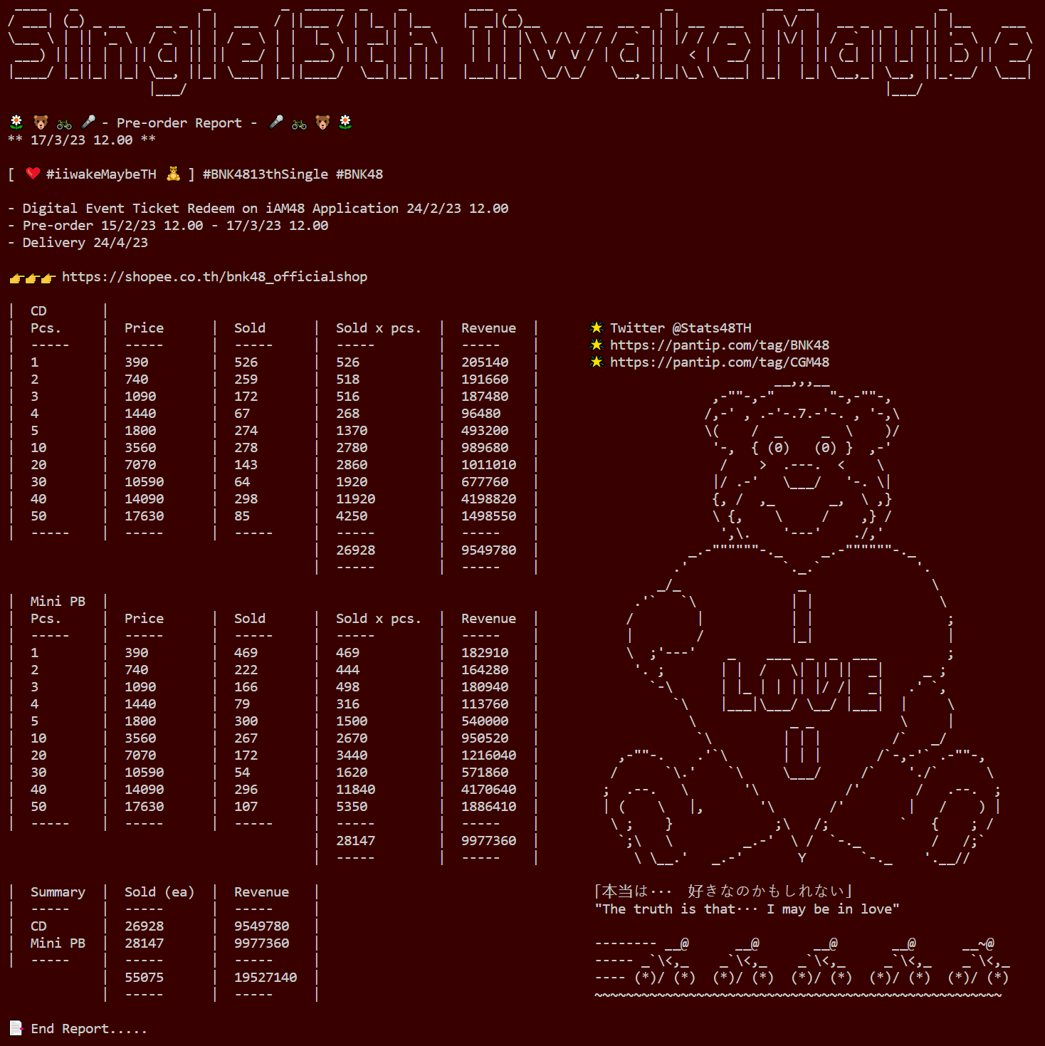 [Update] ยอดพรีออเดอร์ BNK48 13th Singles Iiwake Maybe ***เวลาปิดพรี (17/3/23 12.00)