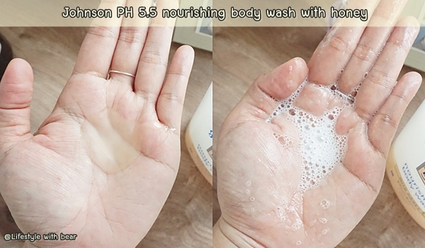 เนื้อครีมอาบน้ำจะเป็นเหลวๆ สีออกเหลืองอมส้ม เราจะชอบสูตรน้ำผึ้งอันนี้นะ มีกลิ่นหอมน้ำผึ้งอ่อนๆ แถมน้ำผึ้งเองก็ยังช่วยบำรุงผิวด้วย เวลาอาบแล้วจะช่วยให้ผ่อนคลายได้ดีเลย