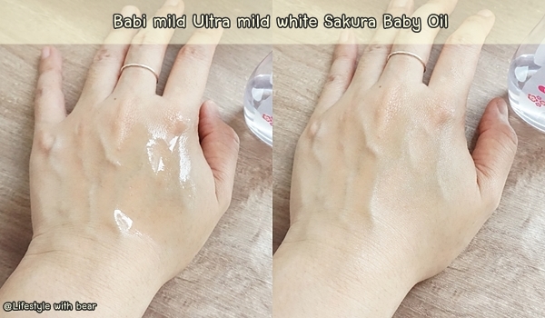 พออาบน้ำเสร็จแล้วเราจะลงด้วยเบบี้ออยล์ทุกครั้ง ทาไปตอนที่ตัวหมาดๆ จากนั้นก็ใช้ผ้าขนหนูซับๆ มันก็จะไม่เหนียวเหนอะหนะผิวเลย สามารถใช้ได้ทุกแบรนด์เลย แต่เราชอบเบบี้มายด์รุ่นไวท์ซากุระที่สุด เราว่าตัวออยล์ละมุนไม่เหนียวมากเกินไป รวมไปถึงกลิ่นก็หอมกำลังพอดี