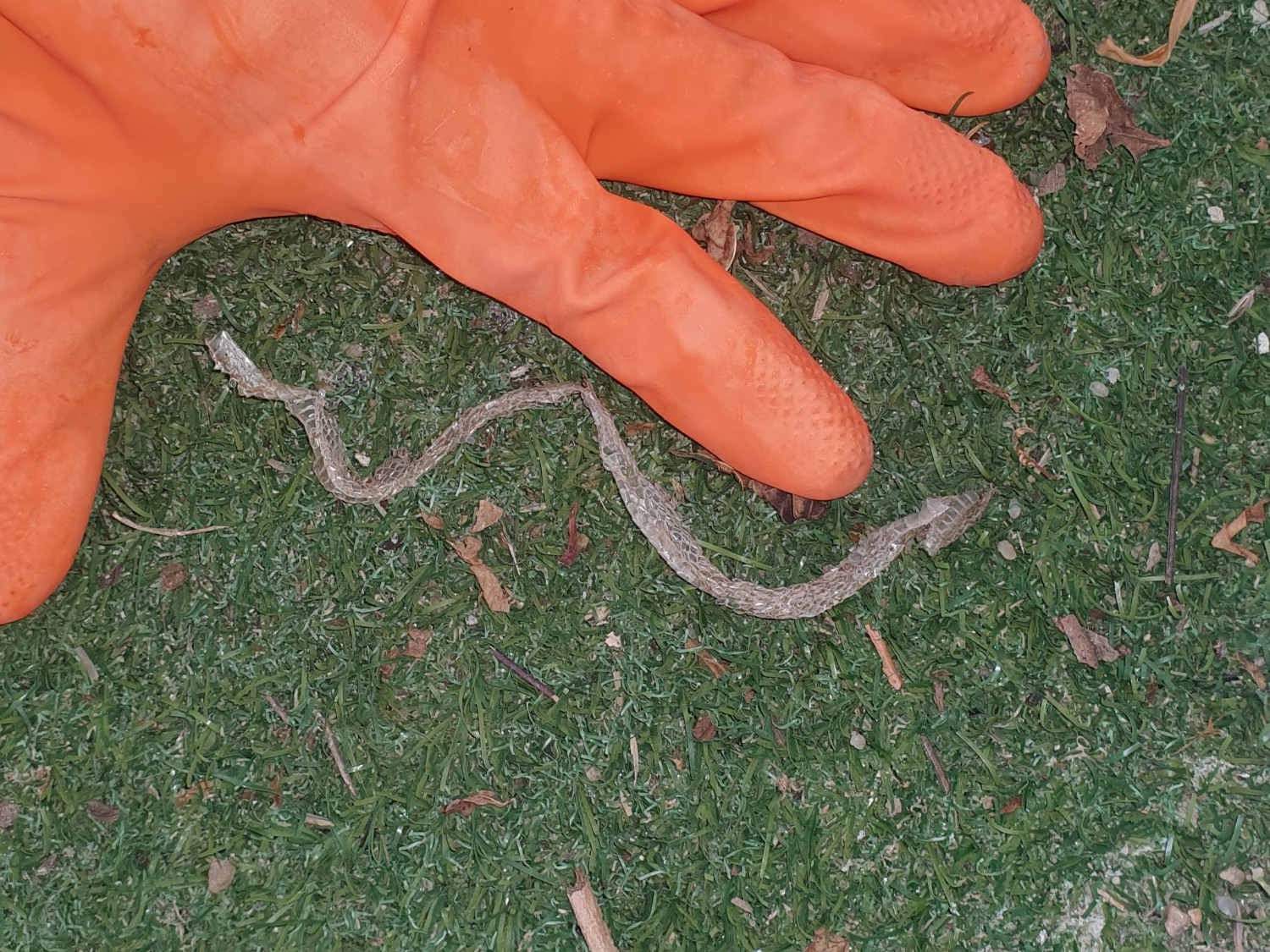 เจอคราบงูนี้ ที่สนามหญ้าเทียมหน้าบ้าน ไม่แน่ใจว่าปลิวมา หรือ งูลอกครบตรงนี้เลย แต่ไม่เคยเห็นตัวงูเป็นๆเลย