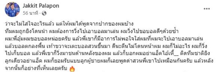 "อย่าแอ็คไอ้เหี้_ ติดทีมชาติยิงแค่ลูกเดียวอย่าแอ็ค" คําพูดเจ็บอยู่นะ