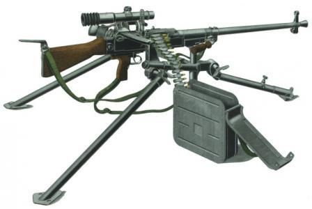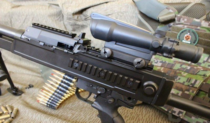 ระบบศูนย์เล็งมากับศูนย์หน้าพับได้ เล็งประกอบกับศูนย์หลังที่เป็นคันปลดฝาครอบห้องป้อนกระสุน หรือสามารถใช้กล้องมีกำลังขยายได้ ปลอกลดเเสงเเบบ 4 แฉก ด้ามหิ้วลำกล้องที่เปลี่ยนมุมจับได้ เเละชุดขาทรายปรับระดับพับเก็บได้