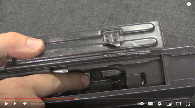 เครื่องลั่นไก พร้อมยิงในตำเเหน่งหน้าลูกเลื่อนเปิด ปรับยิง ห้ามไกทีละนัด เเละอัตโนมัติ