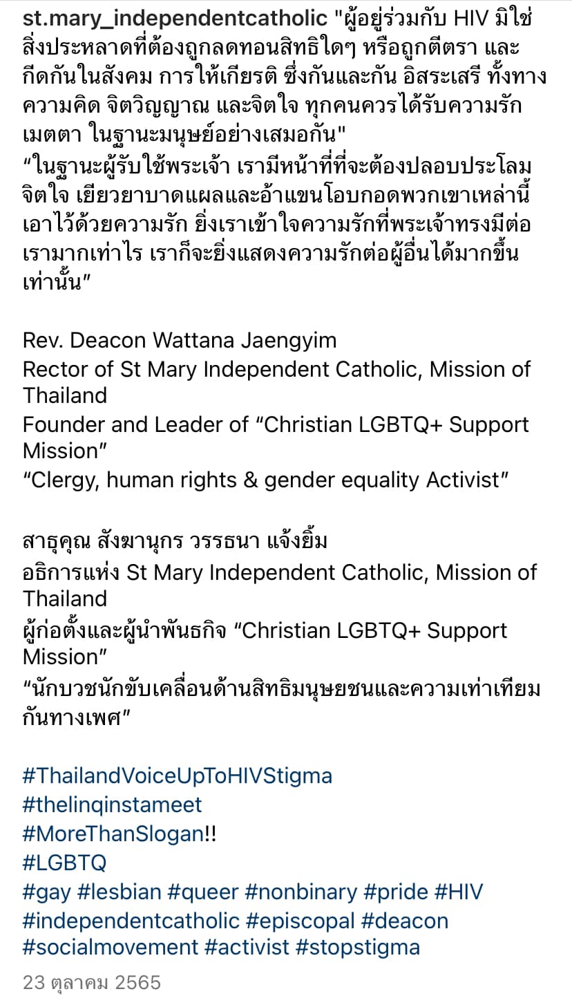 + แอดมินดูชื่อ IG น่าจะเป็น “สาธุคุณ วรรธนา แจ้งยิ้ม (Reverend Wattana Jeangyim)” ผู้ดูแลเซนต์แมรี่คาทอลิกอิสระ