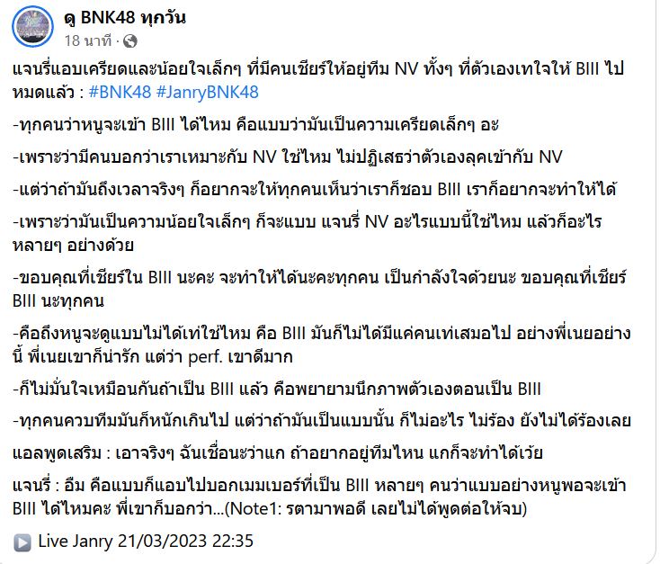อืม คือแบบก็แอบไปบอกเมมเบอร์ที่เป็น BIII หลายๆ คนว่า แบบอย่างหนูพอจะเข้า BIII ได้ไหมคะ?