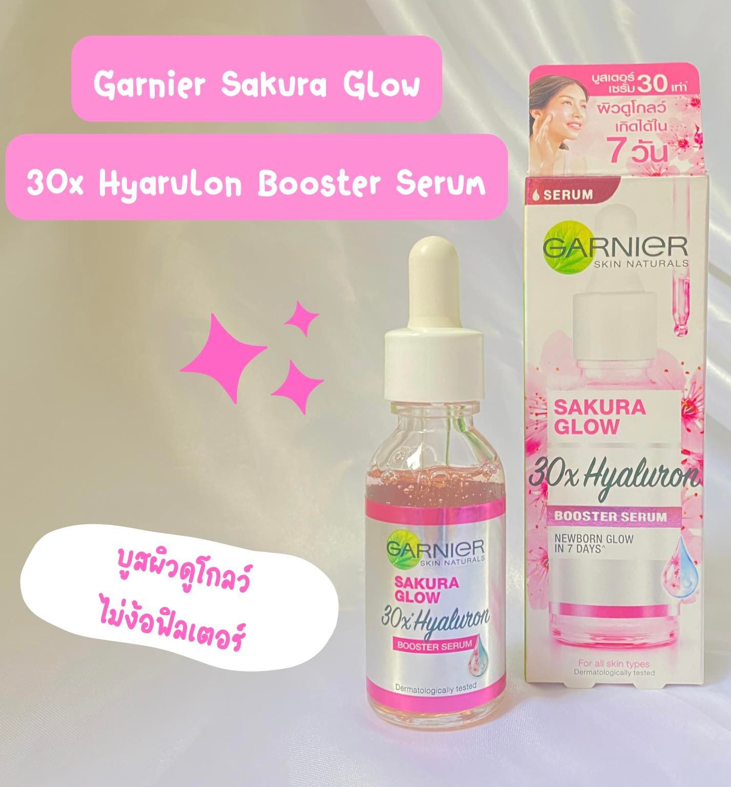 Garnier Sakura Glow 30x Hyarulon Booster Serum ขนาด 30 ml. สามารถหาซื้อได้ในราคา 449 บาท และหากใครอยากลองก่อนซื้อขนาดจริง ก็สามารถหาซื้อแบบซองมาลองก่อนได้นะคะ แบบซองขนาด 7.5 ml. ราคา 39 บาทเท่านั้น หาซื้อได้ที่ห้างสรรพสินค้าชั้นนำทั่วประเทศ หรือสั่งออนไลน์ที่ Lazada / Shopee ก็ได้นะคะ