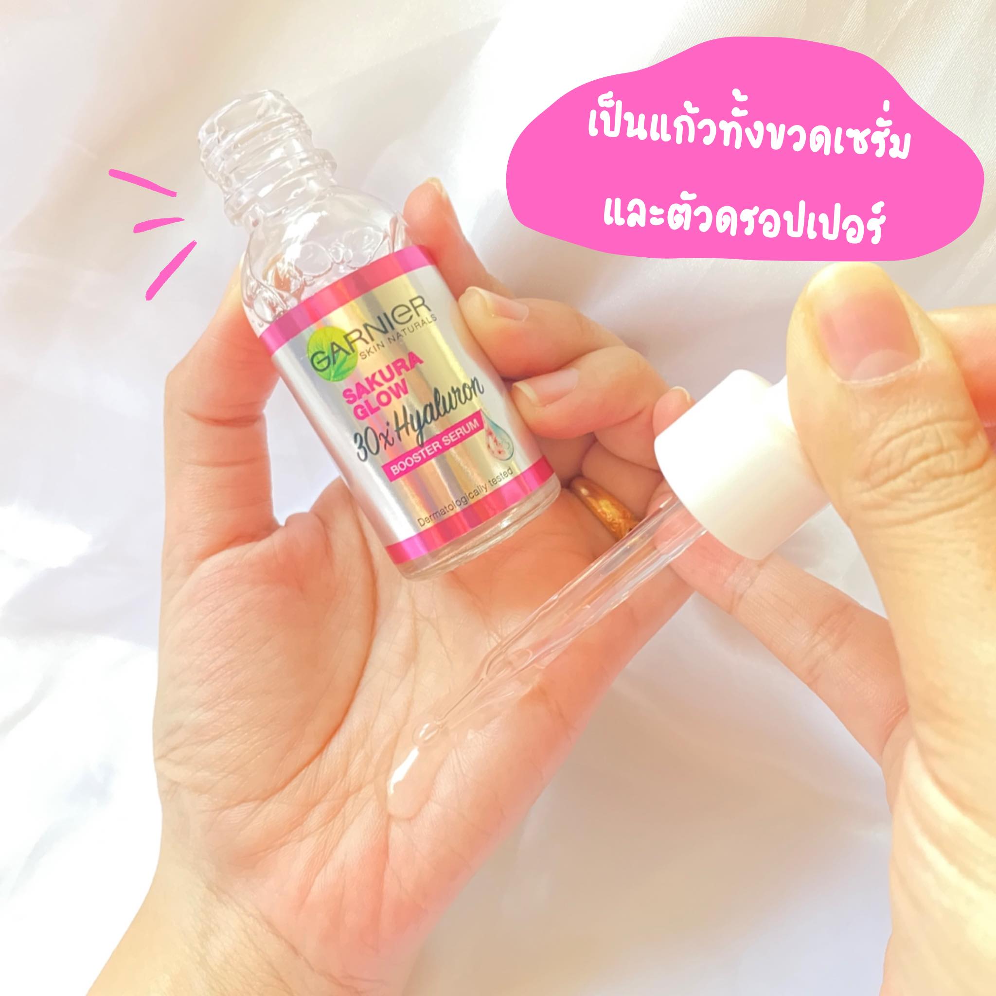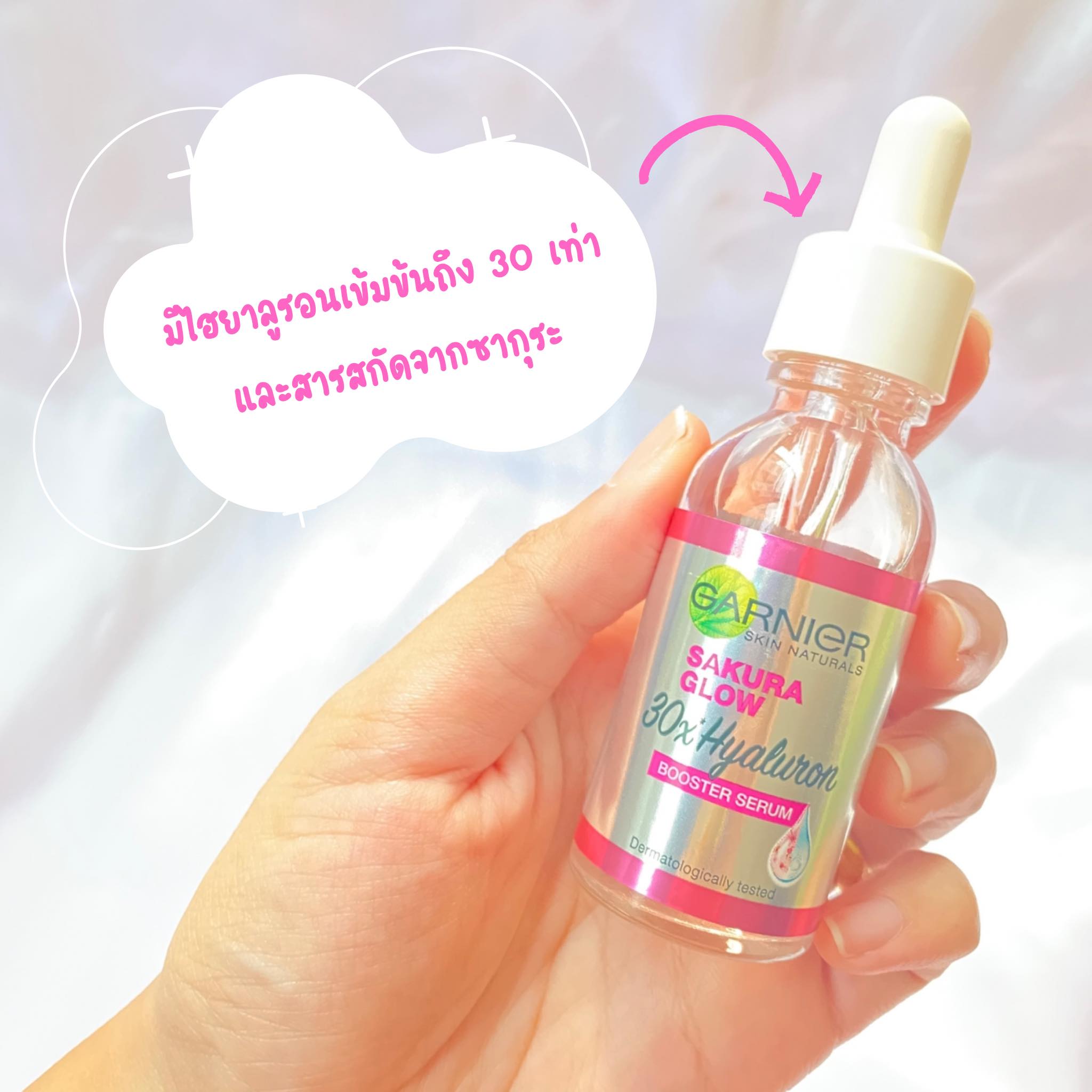 ขวดนี้เป็นบูสเตอร์เซรั่มบำรุงผิวเข้มข้น ที่จะช่วยเติมความชุ่มชื้นให้กับผิว ด้วยพลังไฮยาลูรอนเข้มข้น 30 เท่า* และสารสกัดซากุระ ที่ตรงเข้าบูสความชุ่มชื้นให้แก่ผิวของเราอย่างล้ำลึก เพื่อผิวดูเปล่งปลั่ง อิ่มน้ำ ดูฉ่ำ โกลว์ใส ดูสุขภาพดี
