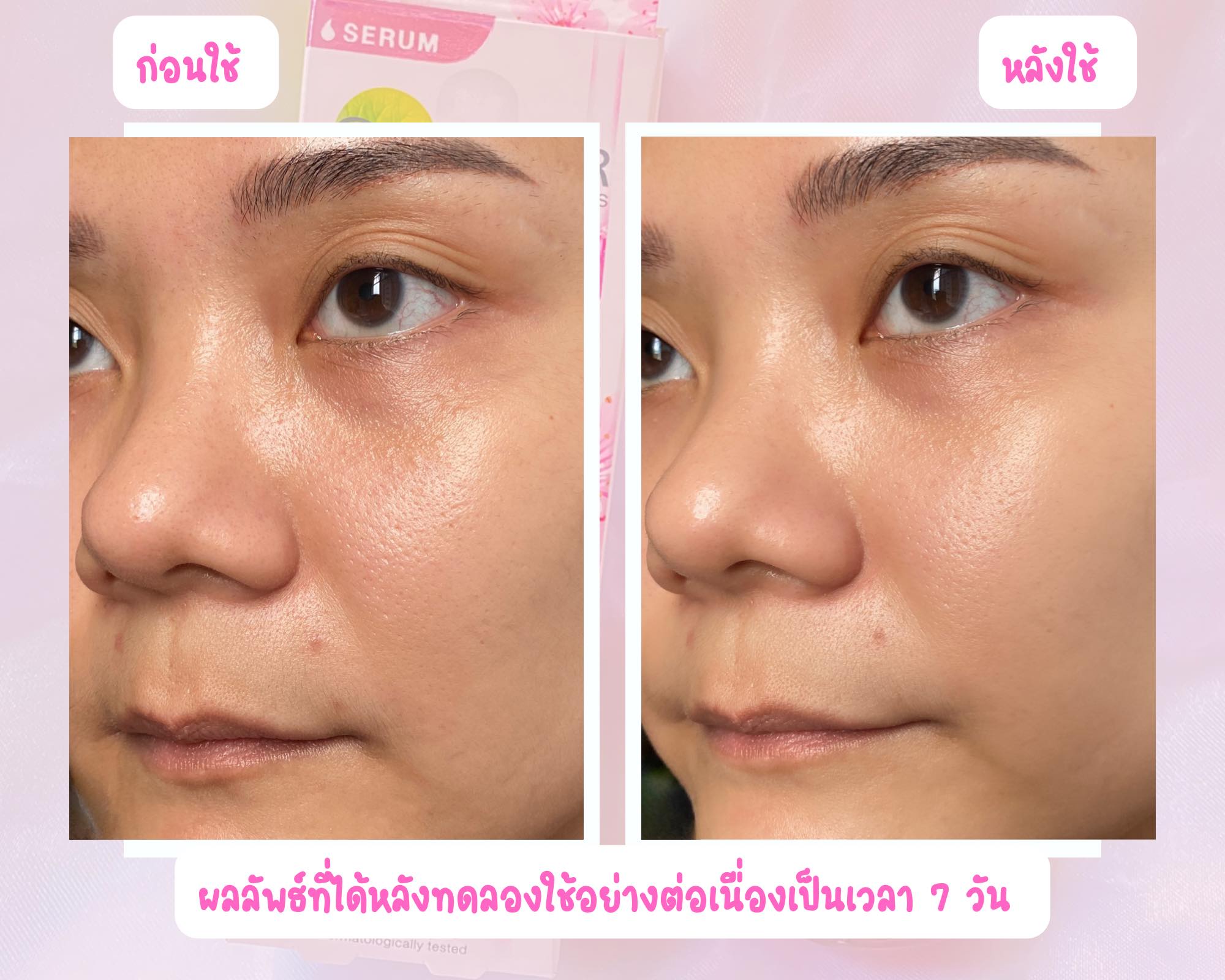 After using 7 days - ชอบที่เนื้อซึมไว ไม่เหนียวเหนอะหนะผิวเลย ผิวชุ่มชื้นอิ่มฟูและเด้งมากแม่ ผิวละเอียดขึ้น ดูโกลว์ ฉ่ำวาว และรู้สึกว่าผิวกระจ่างใสขึ้นระดับนึงด้วย ส่วนเรื่องรูขุมขนและรอยสิวนั้นอาจจะต้องใช้เวลามากกว่านี้ในการใช้เซรั่ม ส่วนตัวเป็นคนผิวผสม+แพ้ง่าย แต่ตัวนี้ขวัญใช้แล้วไม่เกิดอาการแพ้ และไม่เกิดการอุดตันที่ผิวด้วย ทาก่อนนอนตื่นมาคือผิวยังชุ่มชื้นอยู่เลย สำหรับใครที่อยากเติมความฉ่ำโกลว์ ความเปล่งประกายให้กับผิว แนะนำ เซรั่ม Garnier Sakura Glow เลยค่ะ
