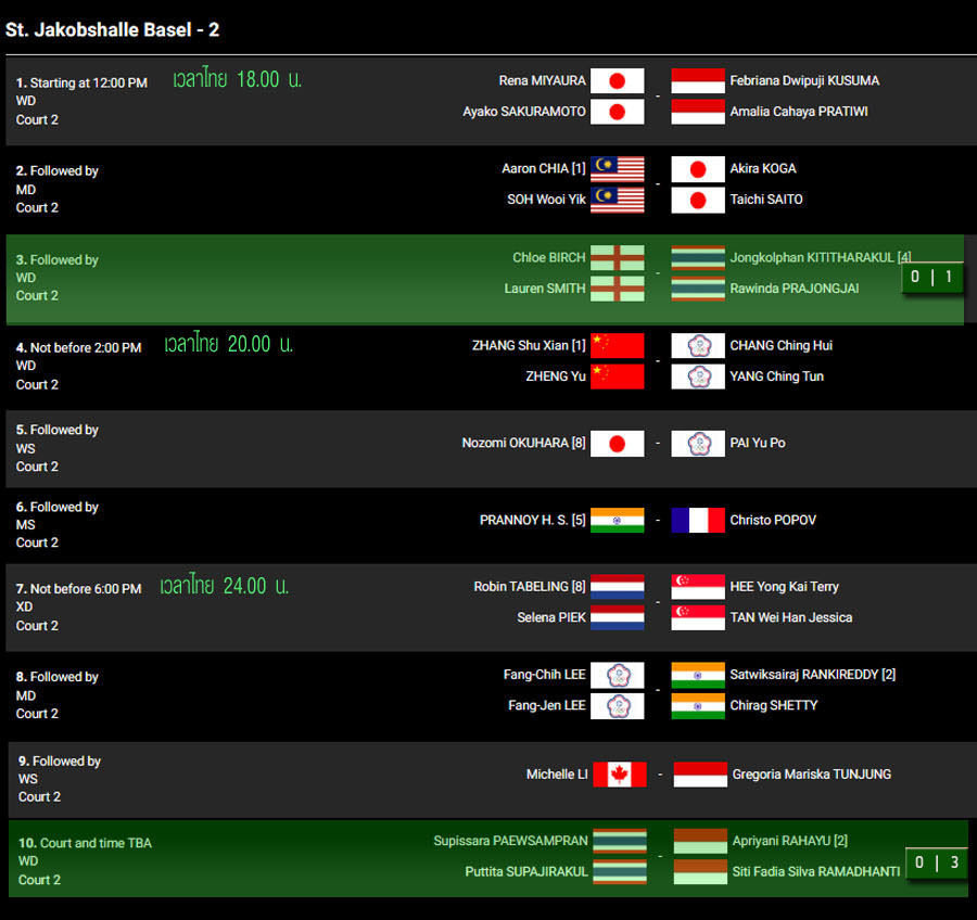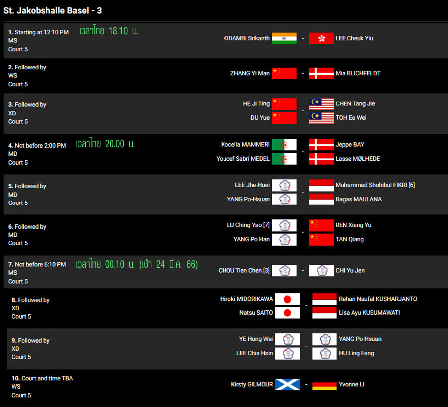 เชียร์สด ! แบดมินตัน YONEX Swiss Open 2023 2023 : รอบ 16 [23 มี.ค. 66] (คู่แรกเวลา 18.00 น.)