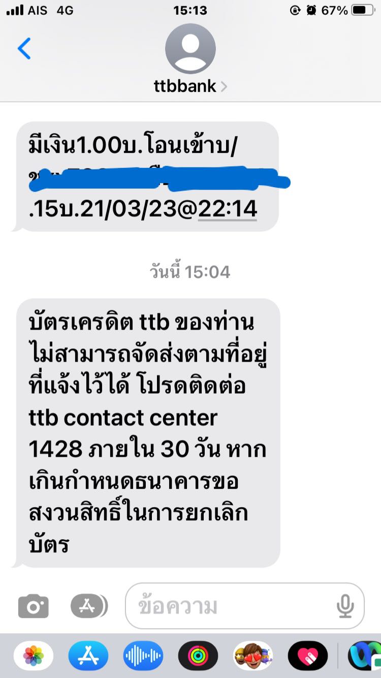 สมัครบัตรเครดิตเอง แล้วมี sms เกี่ยวกับการสมัครบัตรเครดิตมาจากธนาคารนั้น ต่อจากข้อความอื่น ๆ ที่ธนาคารเคยส่งมา