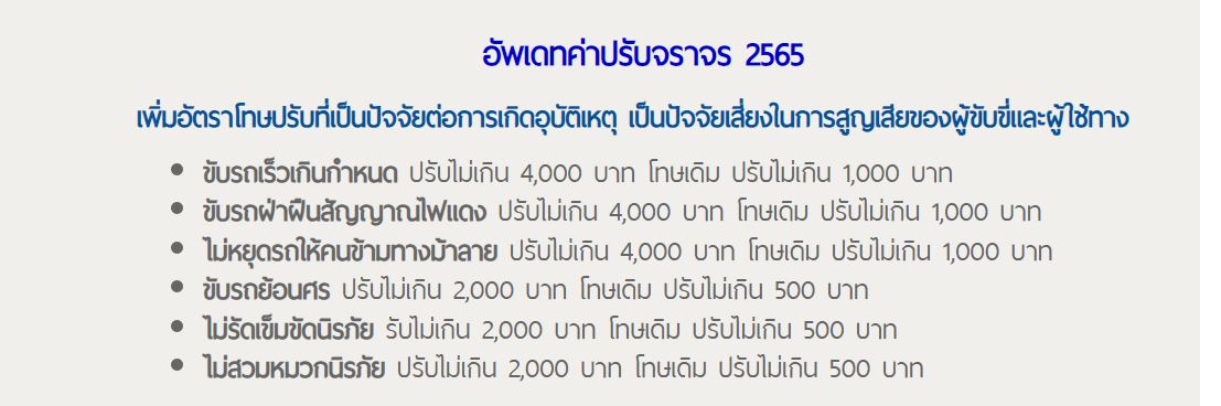 ถึงแน่จะเป็นนอกเรื่องหุ้น อัตราค่าปรับใหม่ 2565 ได้ผ่อนผันมาระยะหนึ่ง น่าจะเริ่มใช้แล้ว เห็นว่ามีประโยชน์กับชีวิตประจำวัน จึงนำมาเล่าสู่กันฟังสบายๆๆ อย่าซีเรียสๆๆ
