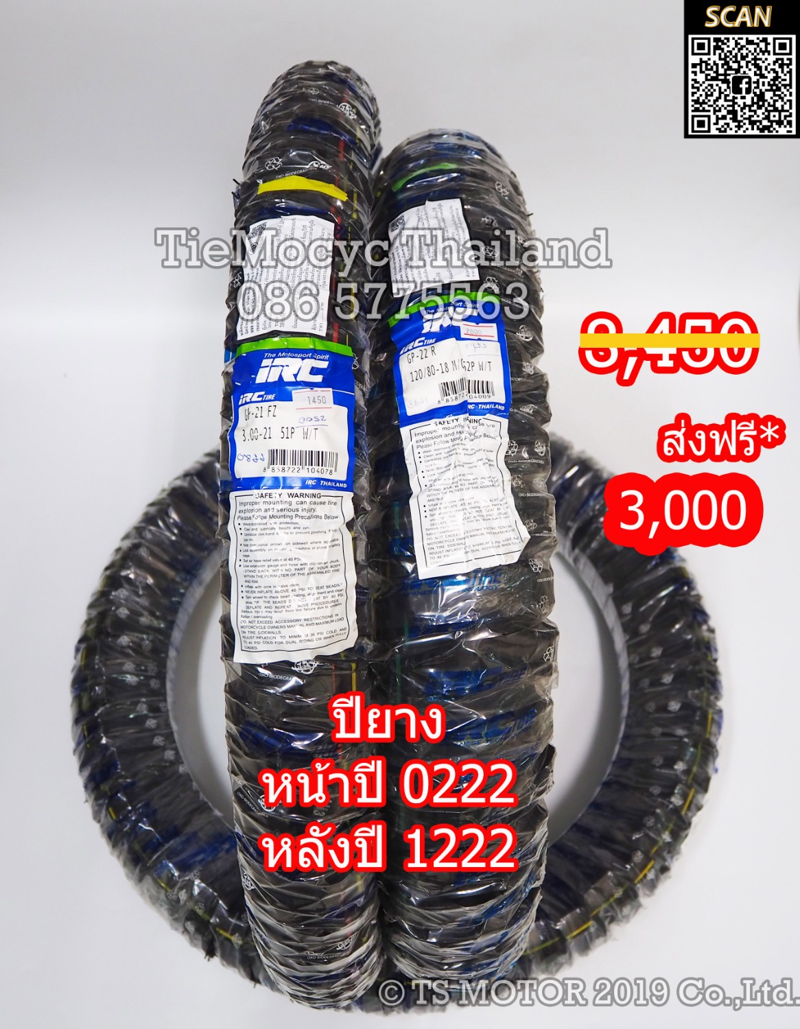 - ยางนอก 3.00-21 GP21F + 120/80-18 GP22R คู่ 3,000 บาท
