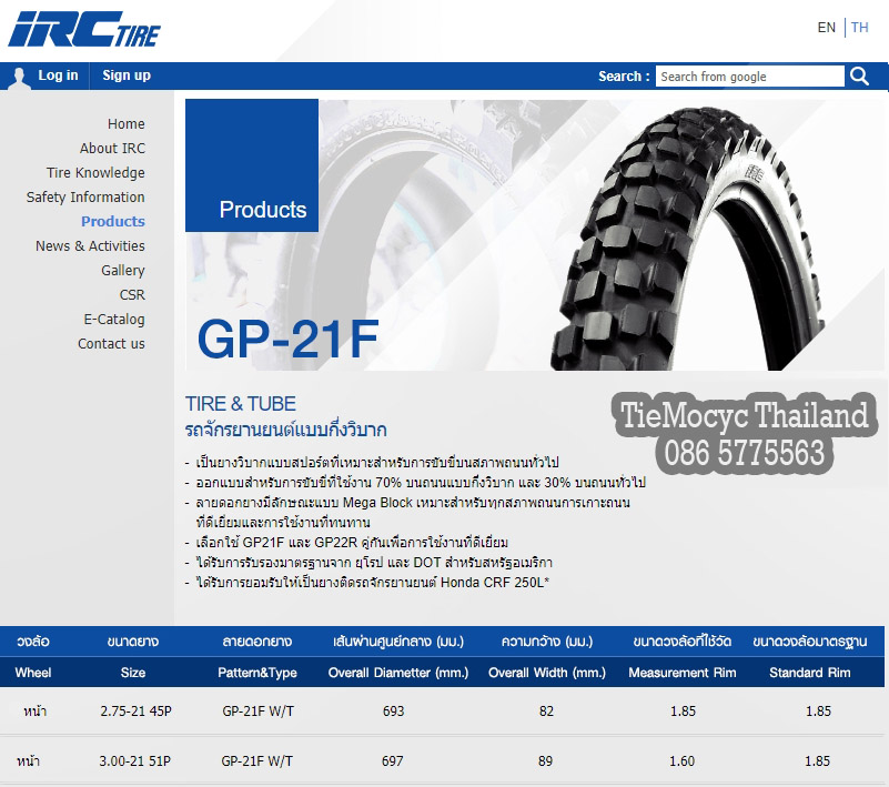 - ยางนอก 2.75-21 GP21F + 4.10-18 GP22R คู่ 2,800 บาท