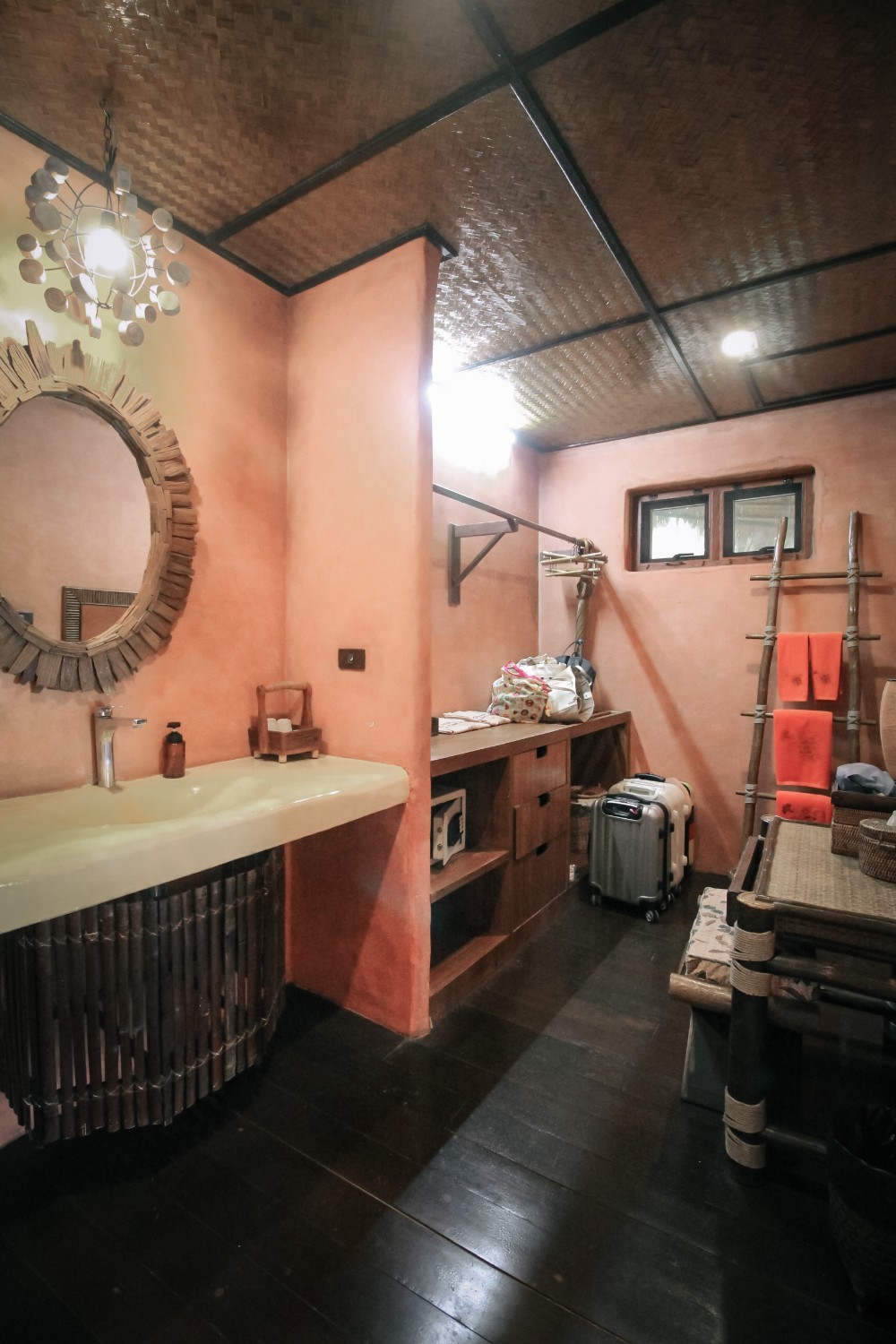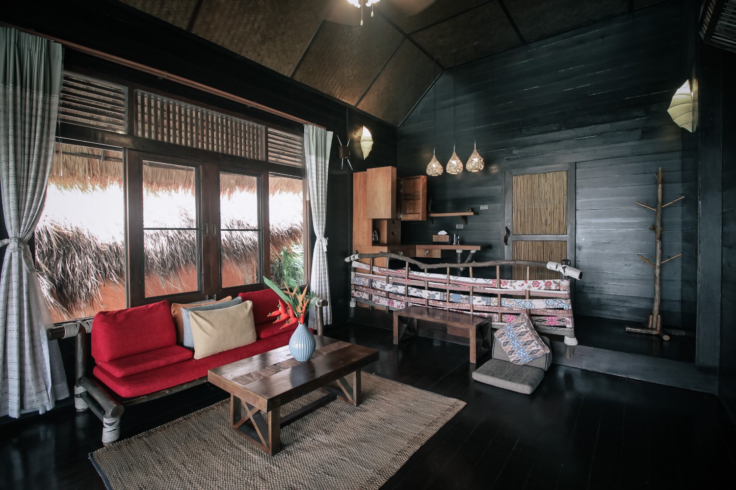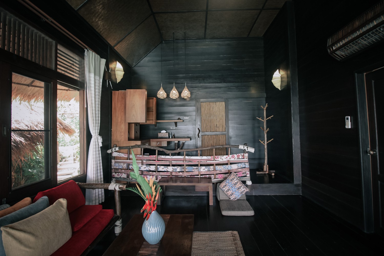 บ้านพักแต่ละหลังจะแบ่งออกไปหลายแบบ มีความเป็นส่วนตัวทุกหลัง ส่วนหลังที่เราไปพัก หลังที่14 จะมีโซนหินเดินขึ้นไปถ่ายรูปได้ หรือจะเดินลงไปเล่นน้ำจากหน้าห้องพักเลยก็ได้ คือดีสุดภายในห้อง14 กว้างมาก มีโซนห้องนั่งเล่นและห้องนอนแยกกัน หรือจะสั่งเล่นหน้าห้องก็ได้ มีเปลนอนชิลด้วยน้า