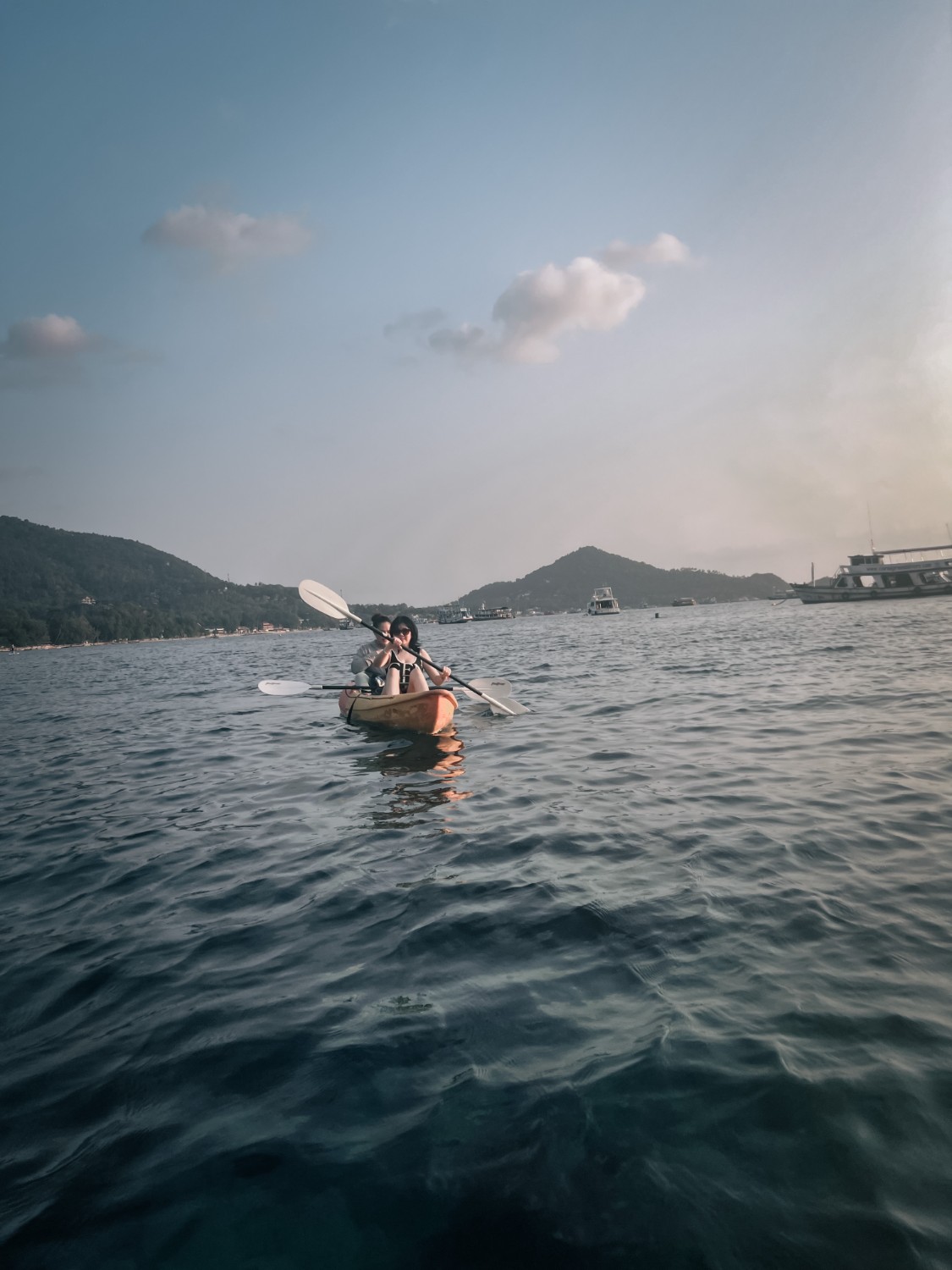 ช่วงเย็น ถ้าใครอยากหากิจกรรมทำ ใครสนใจพายคายัค มาแจ้งพนีกงานที่หน้าหาดได้เลย
