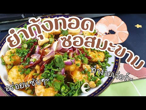 ยำกุ้งทอดซอสมะขาม🍤[ใส่กุ้งทอดกรอบจุกๆ,น้ำยำสุดเข้มข้น ทำง่ายมากๆ]🥜