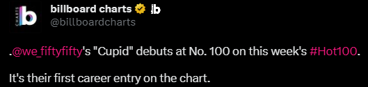 FIFTY FIFTY, Cupid. เดบิวท์ในอันดับที่ #100 บนชาร์ต Billboard Hot100 ประจำสัปดาห์นี้!! 👼