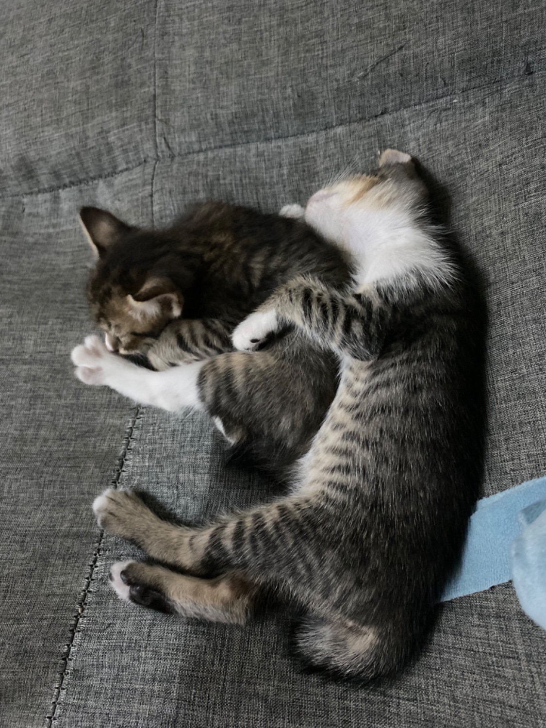 น้องแมวไทย (ไม่แน่ใจว่าผสมไหมค่ะ)เพศผู้อายุสองเดือนนิดๆค่ะ หย่านมตอนเดือนนิดๆ เพราะน้องไม่ยอมกินนมแม่ ป่อนนมแพะก็ไม่กิน พอลองให้อาหารเปียกก็กินใหญ่เลยค่ะ ตอนนี้