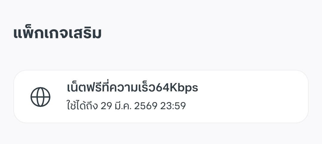 จะได้รับเน็ต 64 Kbps ใช้ได้นาน 30 วัน เมื่อครบ 30 วันก็เติมเข้าไปใหม่ก็จะได้รับเน็ต 64 Kbps ตามรอบการเติมเงินหรือเช็คได้จากแอป myais