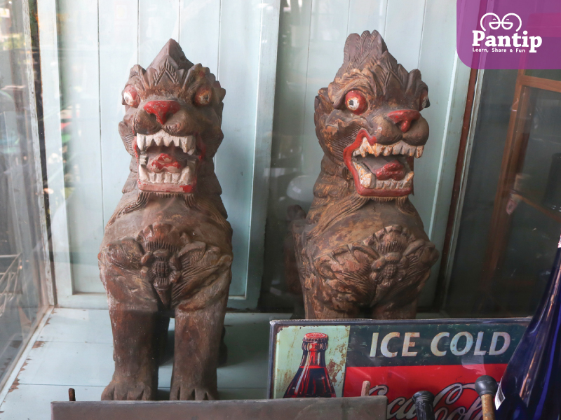 คู่สิงห์งานไม้สักเคยวางไว้ในวัดมาก่อนคู่ละ 25,000 บาท แอบจินตนาการว่าสิงห์คู่นี้เหมาะกับการนำไปวางไว้บันไดหน้าบ้านของคนที่ชอบของเก่าก็คงดูขลังไม่น้อย