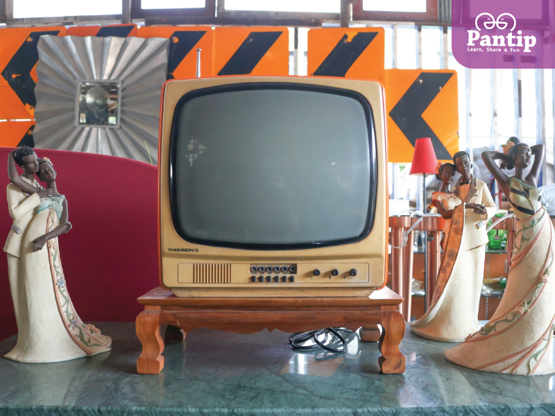 ส่วนทีวีเครื่องนี้ แบรนด์ทอมป์สันราคา 1,200 บาท ข้าง ๆ เป็นตุ๊กตาเรซินมือสองนำเข้าจากต่างประเทศราคาตัวละ 600 บาท