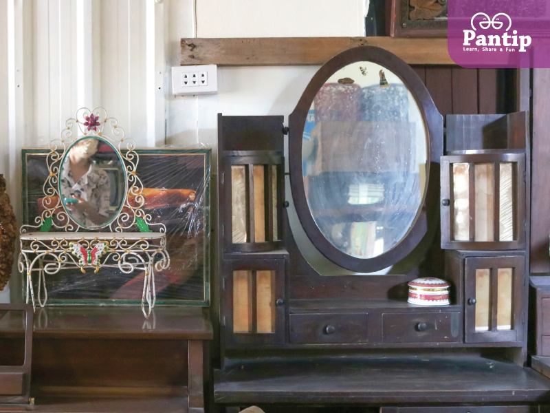 โต๊ะเครื่องแป้งแบบนี้รูปร่างคุ้น ๆ คิดถึงบ้านของยายก็เคยมีโต๊ะแบบนี้ค่ะ แอบสงสัยว่าถ้าส่องกระจกแล้วจะเจอคุณหลวงข้ามเวลามาพบกันบ้างมั้ยนะ