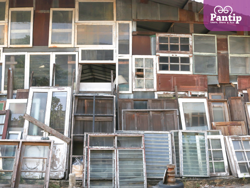 ประตู หน้าต่างเก่า ๆ ก็มีขาย ใครแวะมาถ่ายรูปมีฉากหลังเก่า ๆ แบบนี้ก็ดูเก๋ดีนะคะ
