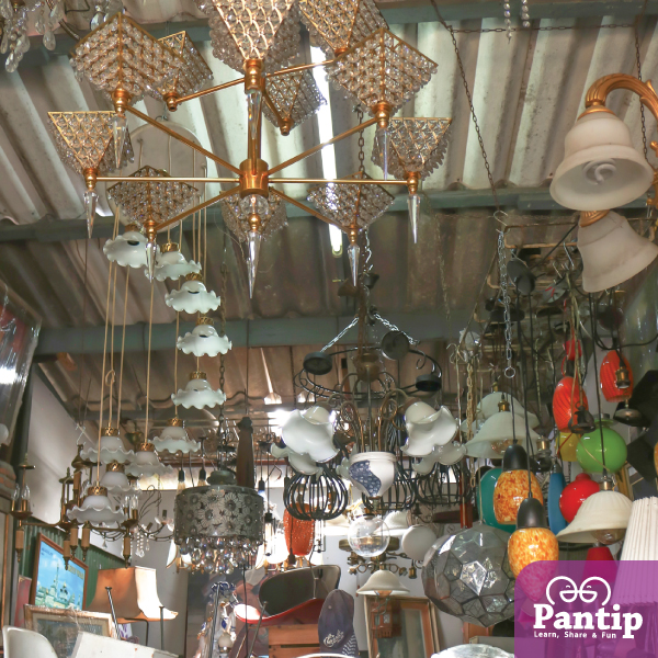 ถัดมาอีกร้านเน้นขายโคมไฟหลายแนวตั้งแต่ยุค 80 วัสดุทองเหลืองบ้าง เหล็กชุบบ้าง ยังใช้งานได้อยู่นะ