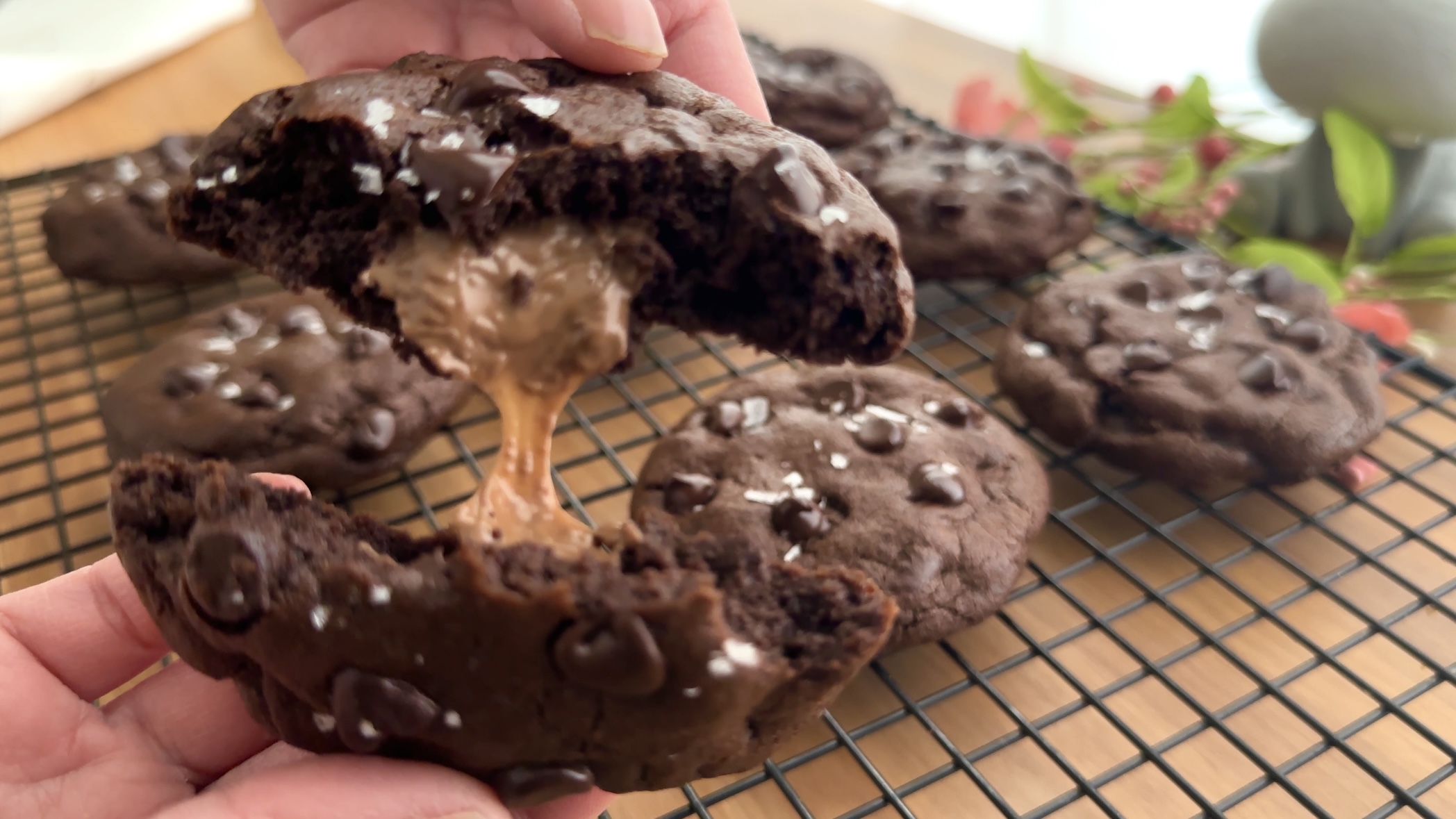 🍪 Caramel Double Chocolate Cookies 🍪 คุกกี้ช็อคโกแลต คาราเมลเยิ้ม ช็อคเข้มๆ ทำง่ายมาก ..by Hippro_SweetTooth