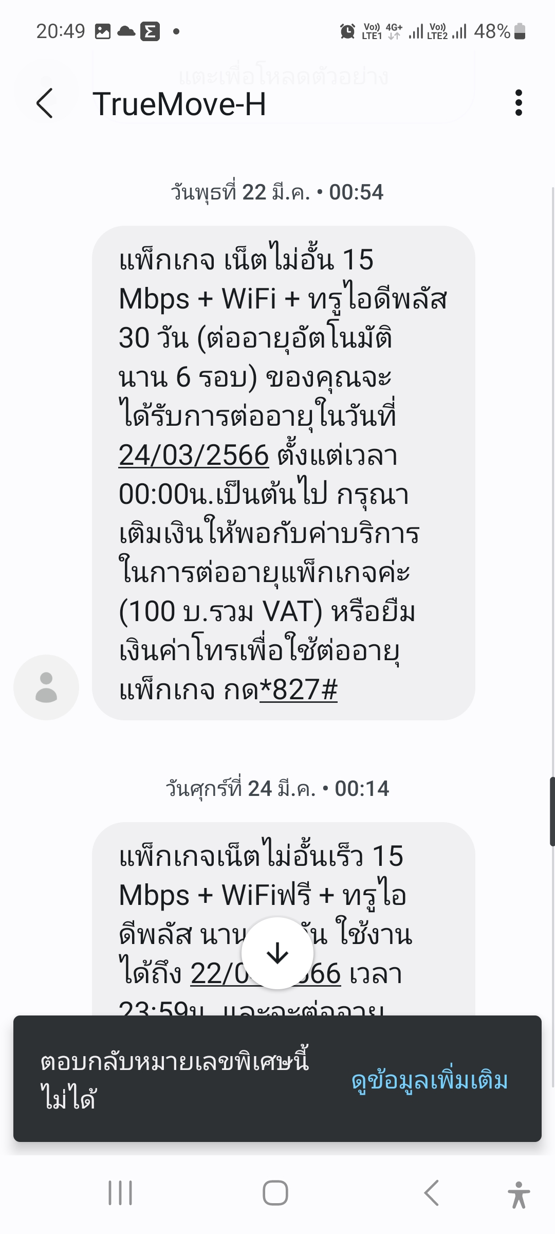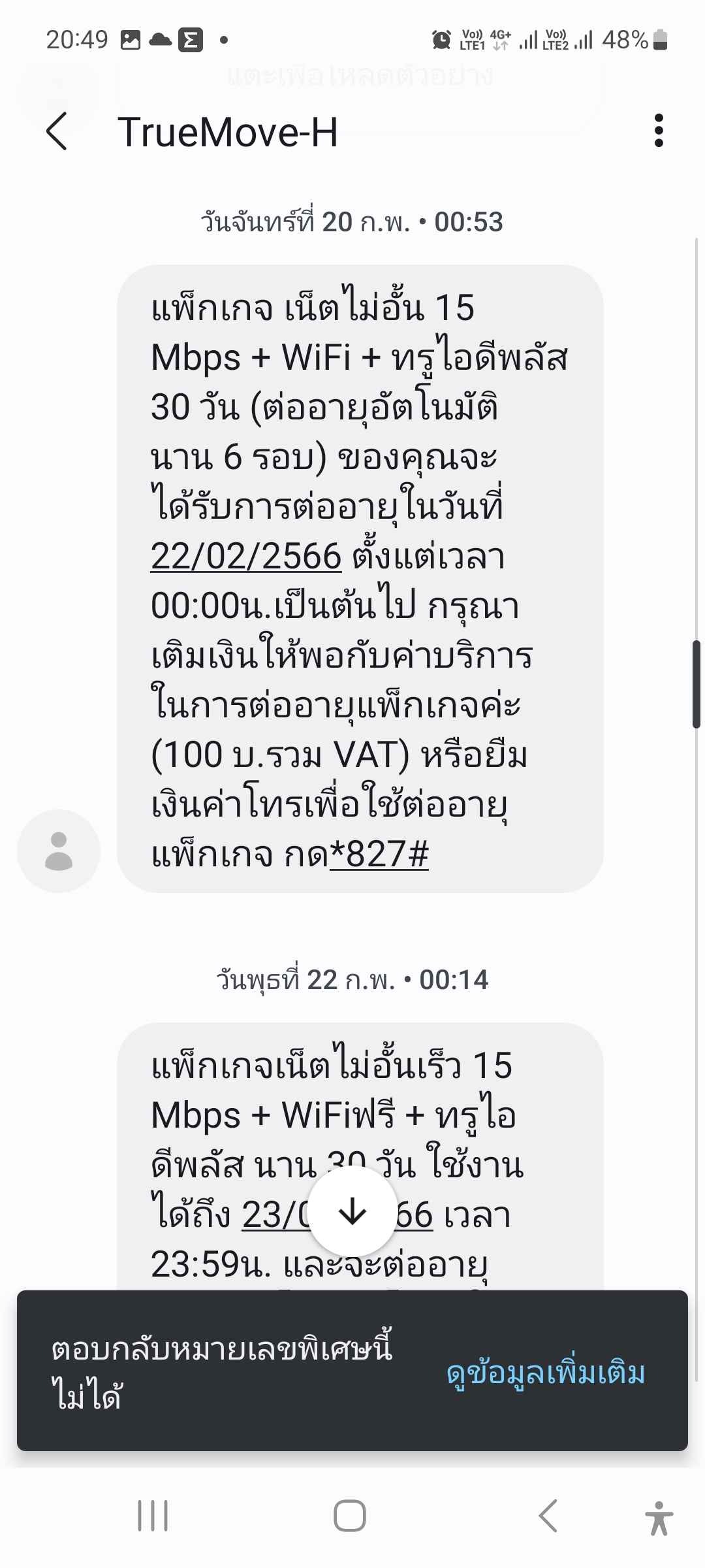-โทรแจ้ง 1242 ของ True พนักงานรับเรื่องทุกครั้งเค้าจะให้ผมกด *137 แล้วก็บอกว่าจะรับเรื่องแก้ไขให้ภายใน 24 ชม. ผมเคยแจ้งเรื่องกับ True 4-5 วันติดกันก็ไม่ได้รับการแก้ไขอะไรเลย โทรไปทุกครั้งจะต้องเริ่มต้นใหม่โดยการให้รอดำเดินการภายใน 24 ชม. หลายครั้งจะมีส่งข้อความประชาสัมพันธ์มาตอนเที่ยงคืน ผมโทรไปแจ้ง 1242 เลย พนักงานบอกว่า ให้ลูกค้าเปิดเสียงเอานะตอนนอน ช่วงนี้เค้าจะรีบดำเนินการให้ แต่ก็ยังมีมาอีกเรื่อยๆ