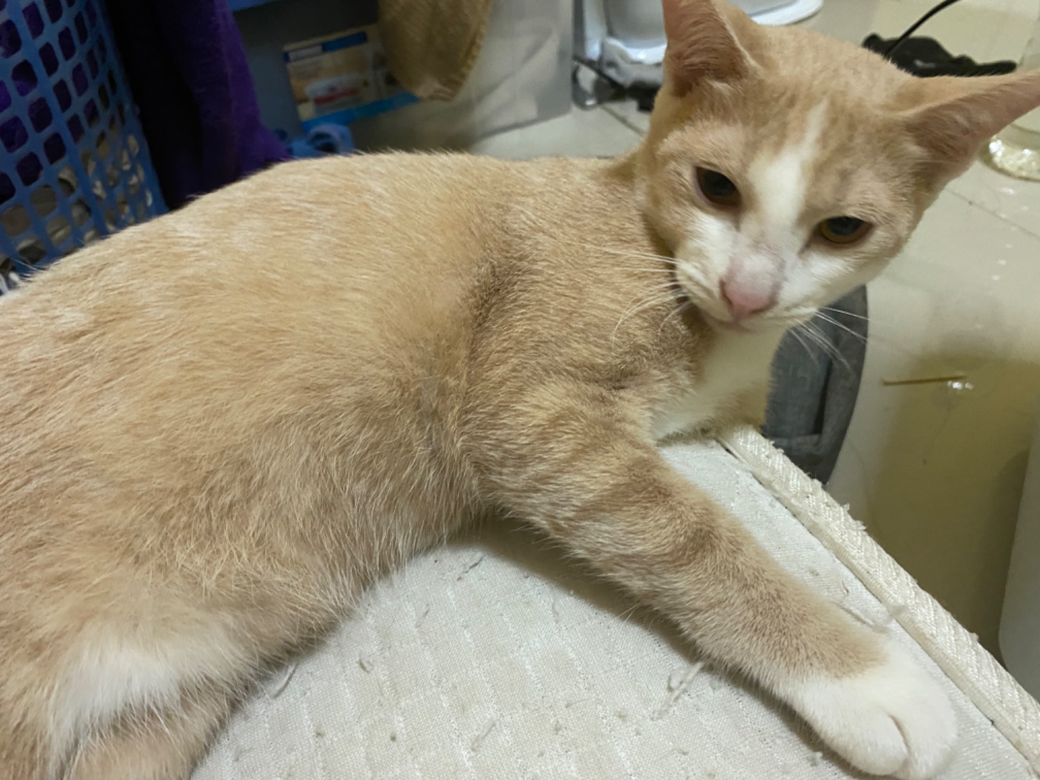 สวัสดีค่ะ เมื่อช่วงเย็นที่ผ่านมา ขณะที่กำลังเดินกลับบ้านผ่านหน้าโรงพยาบาล มีแมวจรตัวเล็กๆ มานั่งอยู่ข้างทาง ดูเหมือนมันจะหลงทางหรือกำลังหาที่พัก เพราะดูท่าทางมันจะไม่ค่อยสบาย ขนยุ่งเหยิงและดูผอมมาก