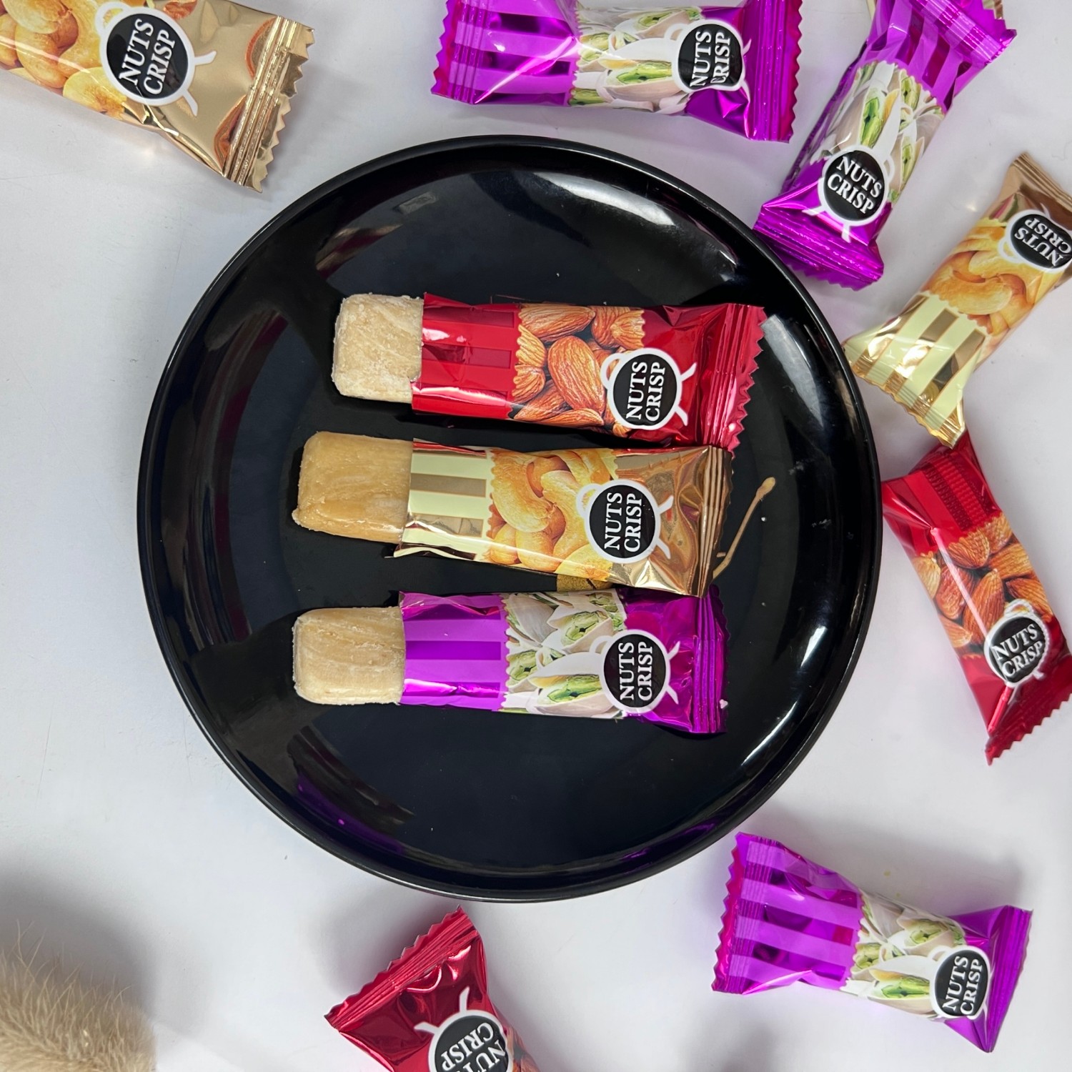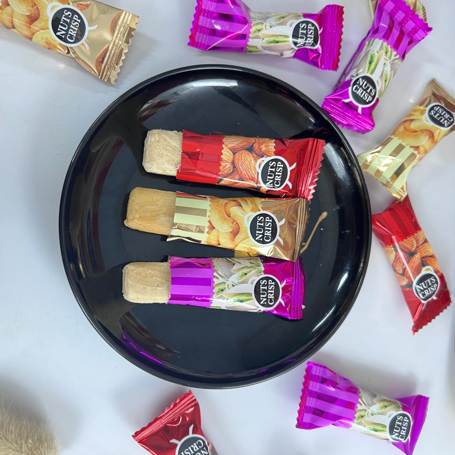 รสดั้งเดิม Nuts Crisp : (รสยอดนิยม) ประกอบด้วยถั่วคุณภาพดี อัลมอนด์ พิสตาชิโอ เม็ดมะม่วงหิมพานต์ แคลอรี่ต่ำ รับประทานคู่กับน้ำชากาแฟยามบ่าย อร่อยกลมกล่อม