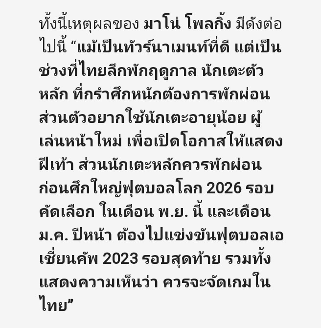 มาโน่เผย FIFA Day มิ.ย นี้ จะใช้เป็นเวทีลองทีม นักเตะหน้าใหม่ๆ