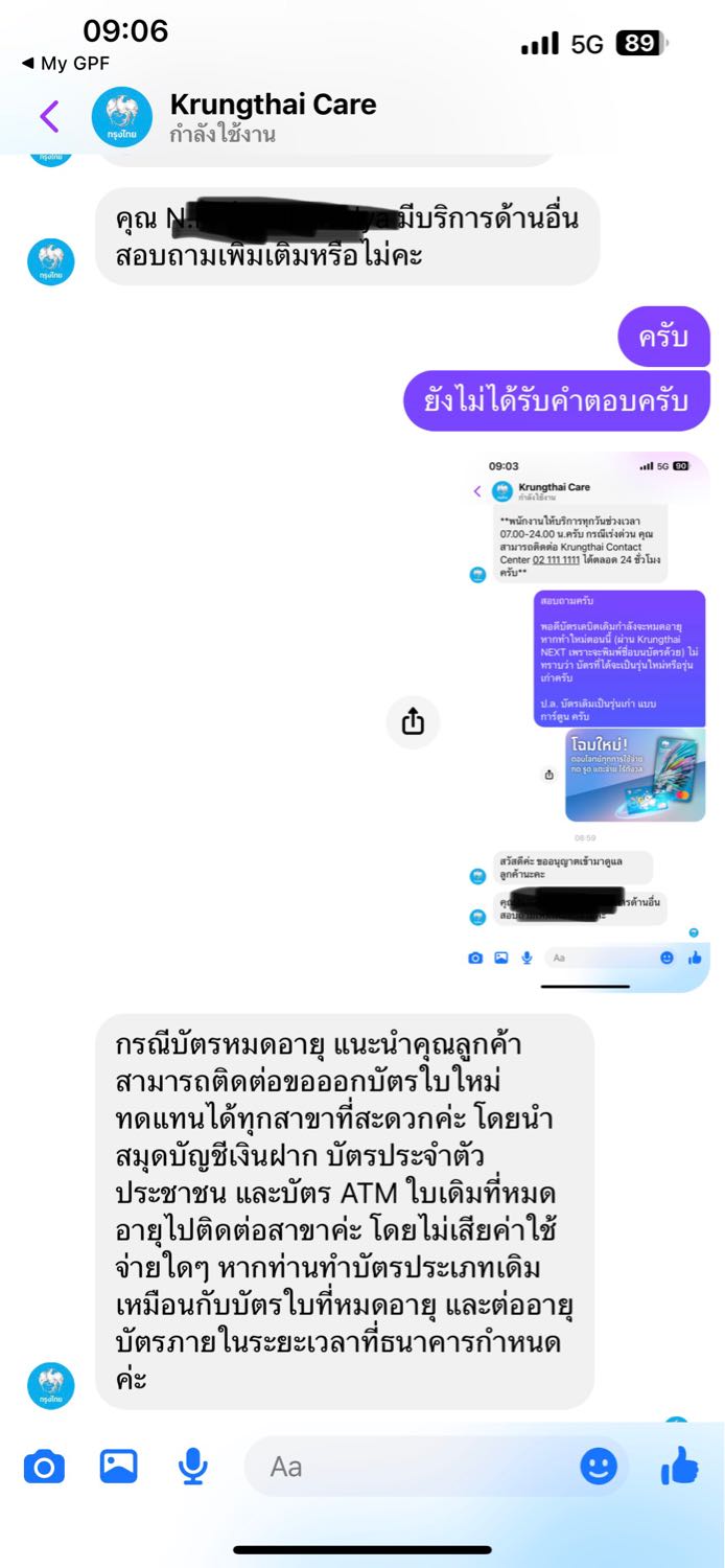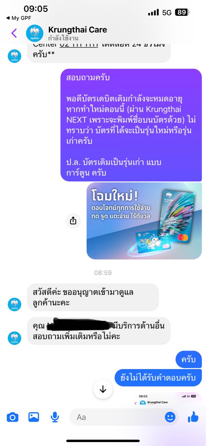 ถามไปใน Krungthai Care แต่ไม่ได้คำตอบ
