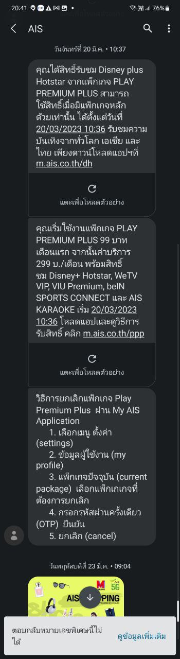 เตือนภัย AIS Play Premium บอกฟรีเดือนแรก แต่เก็บตัง ผมไม่เอา ก็ยัดเยียดให้ เสียดายไม่ได้อัดเทปไว้