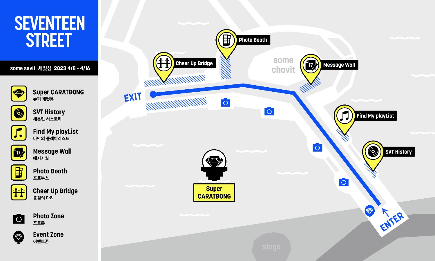 โดยลักษณะของ SEVENTEEN STREET จะออกเป็นแนวพิพิธภัณฑ์ของเซเว่นทีน ซึ่งจะมีโซนตามในรูปค่ะ