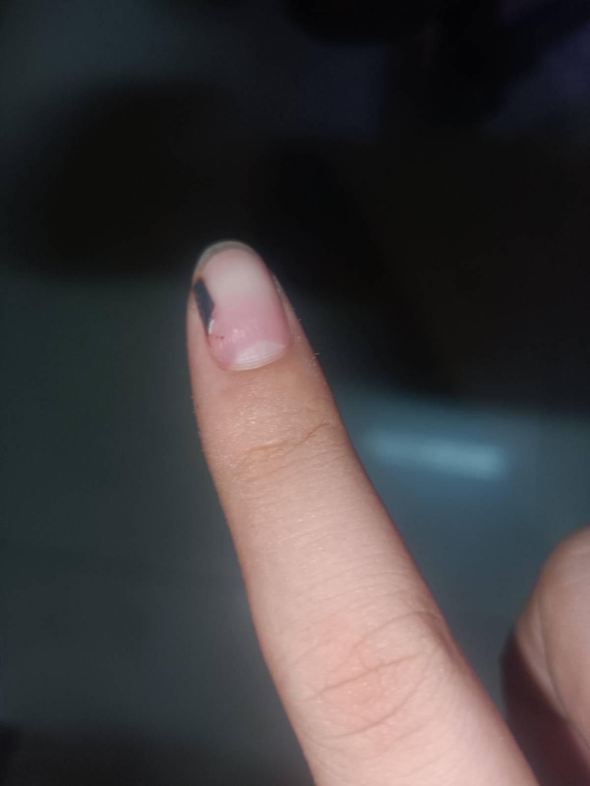 ช่วงเเรก เจ็บๆ ไม่บวม ทีสีดำเกิดบริเวณเล็บ นิดเดียว ไม่มีอาการปวด ไม่เจ็บอะไรเลยใช้ชีวิตได้ปกติ บีบเเล้วไม่เจ็บ