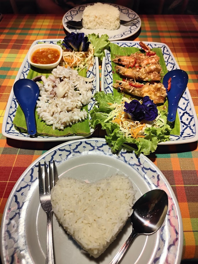 พอค่ำก็ไปชิมอาหารแนะนำที่หาดศาลาด่านนั่งรถ สามล้อรับจ้างไป แปดสิบบาท