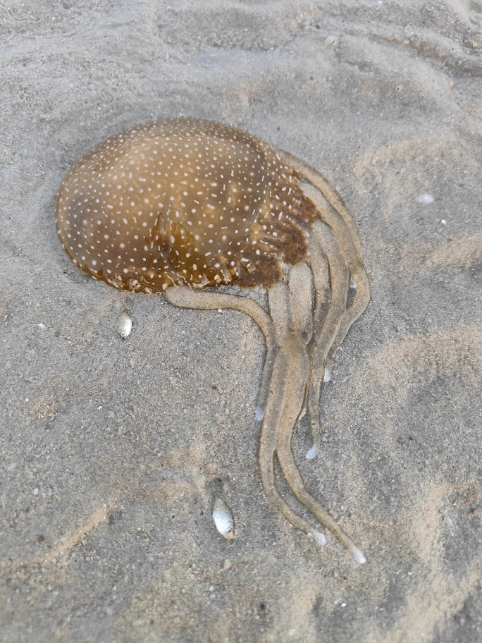 ตามหาดที่นี่คือเดินไปมาจะเจอแมงกะพรุนเรื่อยๆ ทั้งเล็กใหญ่