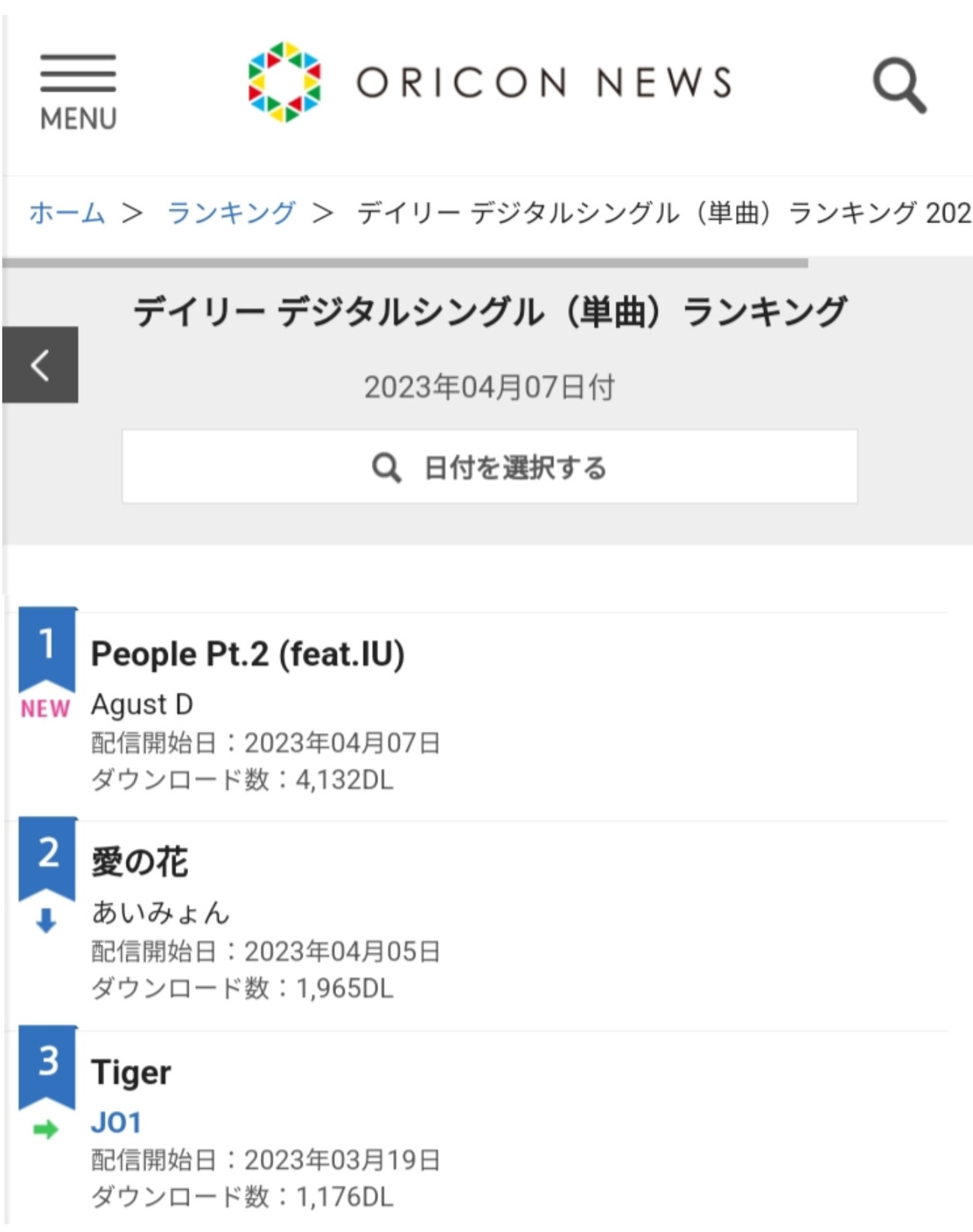 'People Pt.2' by SUGA (feat. IU) เดบิ้วต์ที่อันดับ #1 บน Oricon Daily Digital Singles Chart