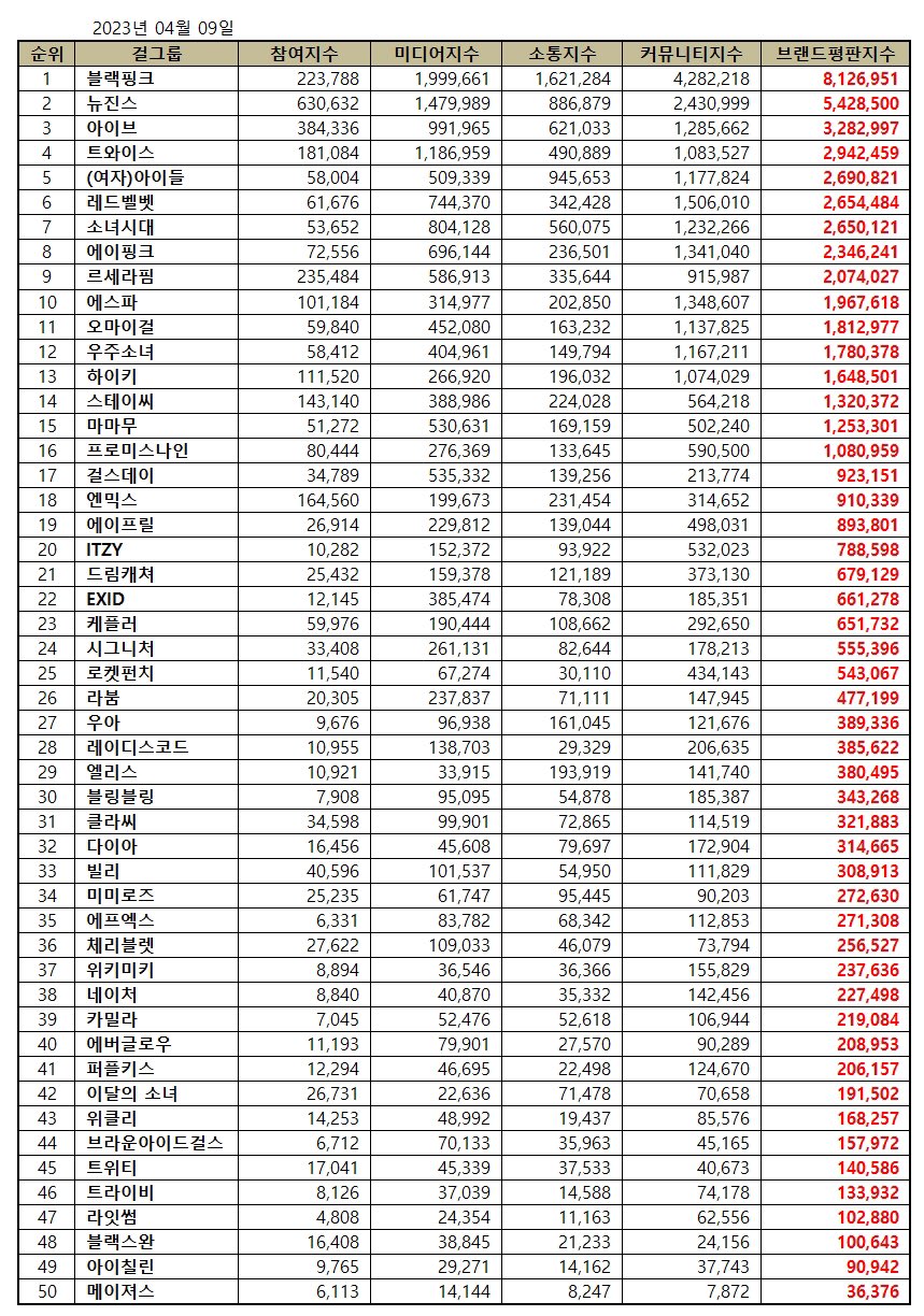 [K-POP] Girl Group Brand Reputation Rankings Announced - April 2023