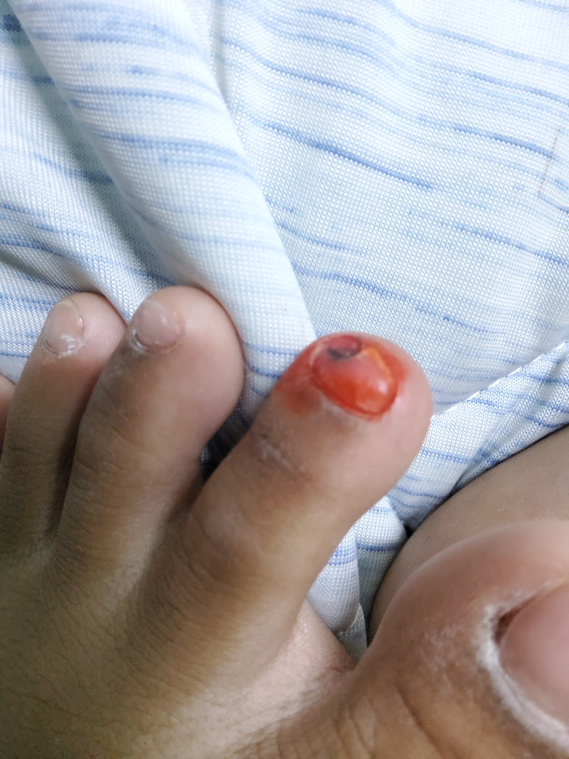 เล็บผมไปถลอกกับพื้นมา แล้วเป็นสีดำนี้เป็นอะไรใหมครับ ใส่เบตาดีนแล้วครับ เป็นมา1-2วันละครับ