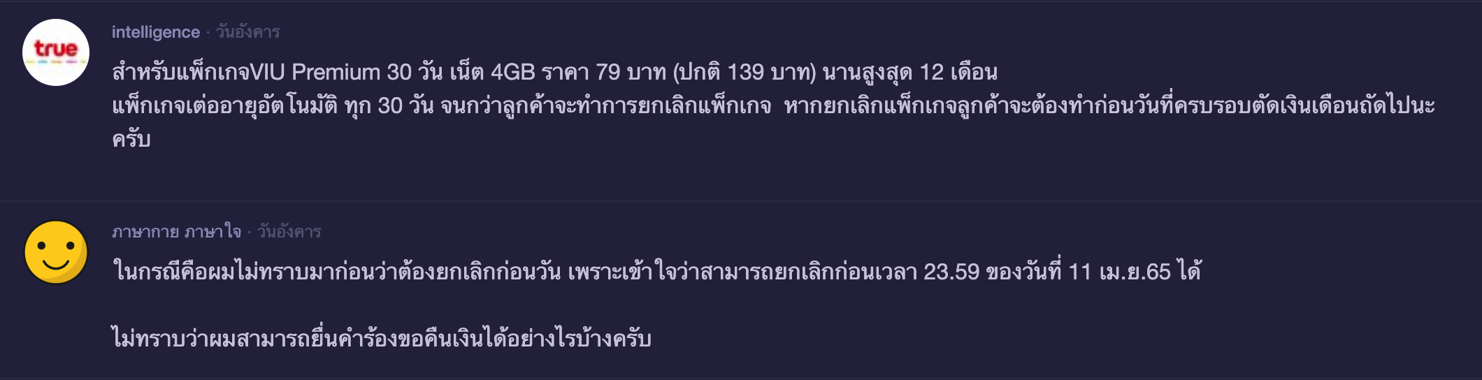 ก็เลยแคปและหลังไมค์ไปทางหลังไมค์ Truemove H ให้ช่วยยกเลิกให้