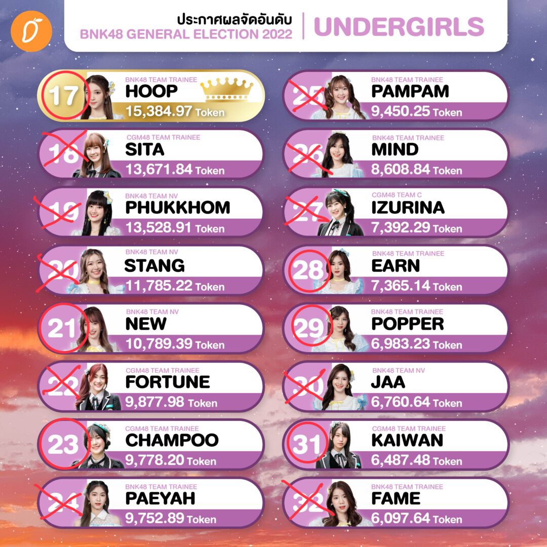 - ขอเว้น BNK รุ่น 4 ทั้ง 8 คนที่ลงสมัครไว้ เพราะเพิ่งลงครั้งแรกยังไม่มีตัวเลข
