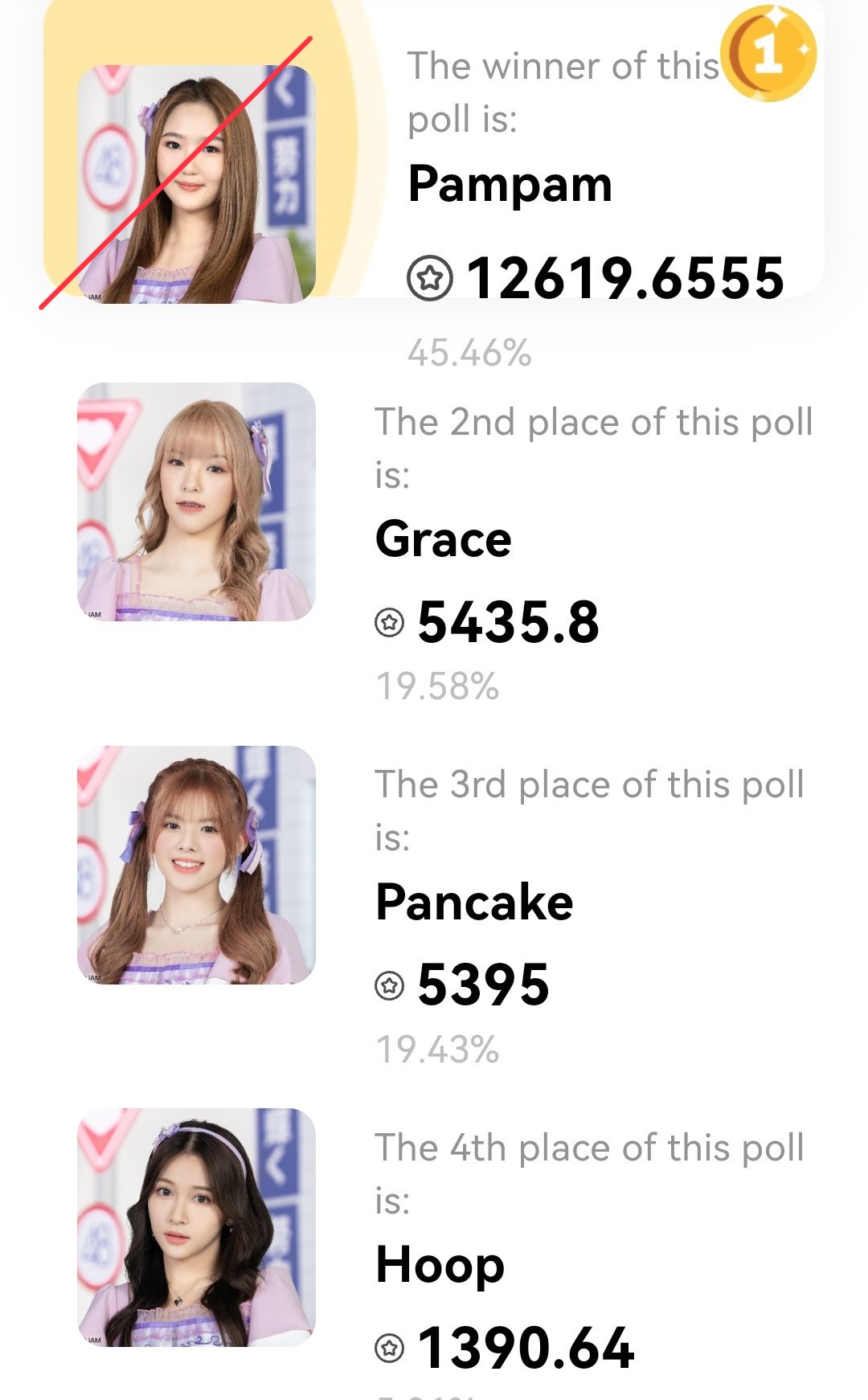 ถ้าไม่รวมคนที่ไม่ลง นิวคะแนนโหวตรองจาก ฮูพ ก็น่าจะติดอันดับเช่นกัน
