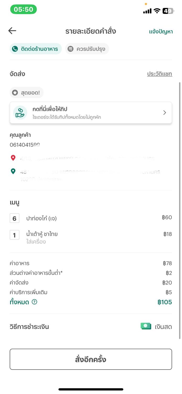 ขับรถไปละ ดีนะของมันพอกินได้ท่ากินไม่ได้เสียเงินเพิ่มอีก ควรทำให้มันติดต่อง่ายขึ้นป่ะเวลามีปัญหาอ่ะ ควรมีเบอร์ติดต่อในแอพ ไม่ใช่จะให้พิมพ์คุยอย่างเดียว