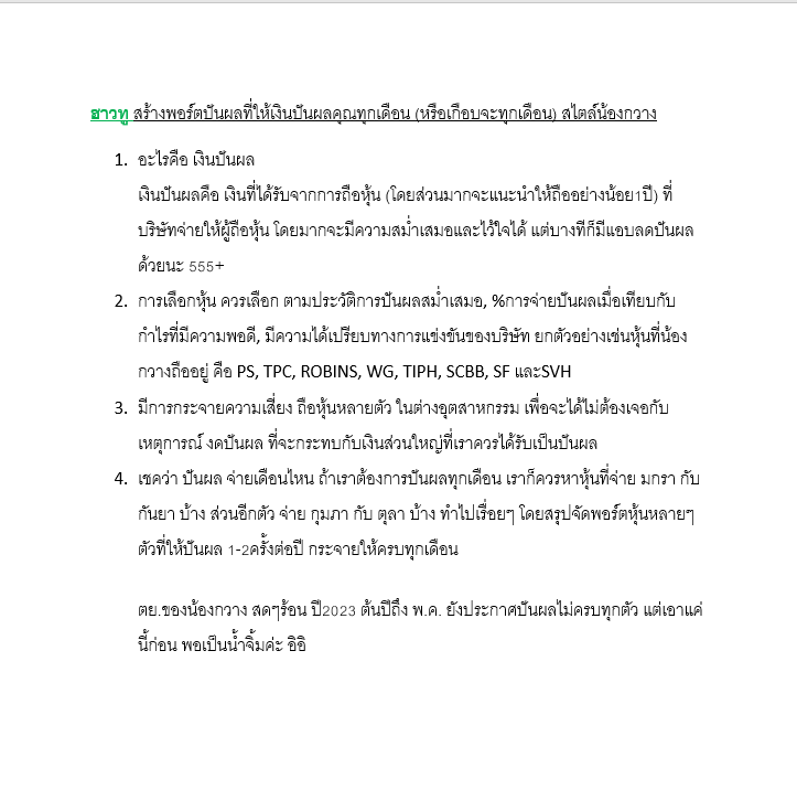 ฮาวทู สร้างพอร์ตปันผลที่ให้เงินปันผลคุณทุกเดือน by น้องกวาง