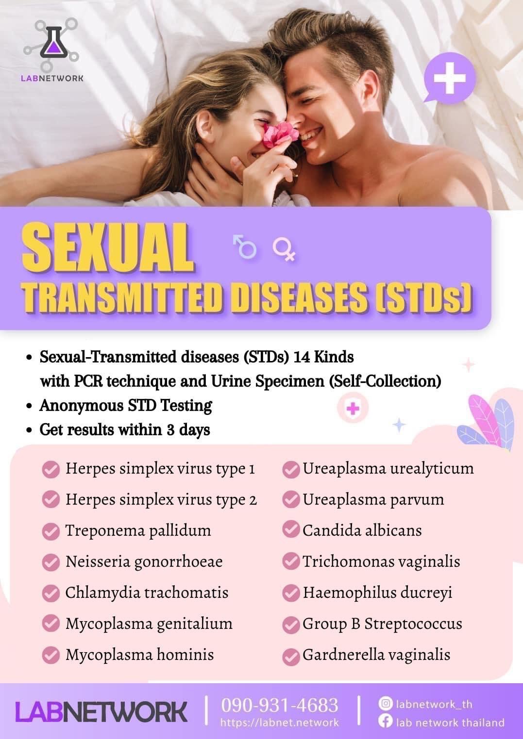 การตรวจโรคติดต่อทางเพศสัมพันธ์ สามารถเลือกตรวจได้จาก ปัสสาวะ อวัยวะเพศ ช่องปาก หรือ ทางทวารหนัก (จุดที่ใช้มีเพศสัมพันธ์) โดยการเก็บตัวอย่าง จะตรวจหาเชื้อโดยวิธี PCR ซึ่งเป็นการเพิ่มสารพันธุกรรมจากตัวอย่าง เพื่อทำการตรวจหาเชื้อที่เราต้องการ การเก็บตัวอย่างหนึ่งครั้ง สามารถตรวจได้หลายโรค โดยการตรวจของ แล็บ เน็ตเวิร์ก สามารถบอกผลโรคติดต่อทางเพศสัมพันธ์ได้ถึง 14 ชนิด คือ